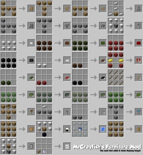Fancy and handy, you now could craft a furniture for your minecraft world. Browse and download minecraft furniture mods by the planet minecraft community. Mrcrayfish's furniture mod is all about adding functioning and useful furniture and decorations. Mr_crayfish's furniture mod adds more than 80 pieces of furniture to minecraft that can be used to decorate your home and garden. It comes with a wide variety of new tables and chairs that look significantly more streamlined and clean than the standard options.
